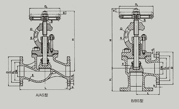 Marine bronze flanged globe valves Product model: AS type, BS type
