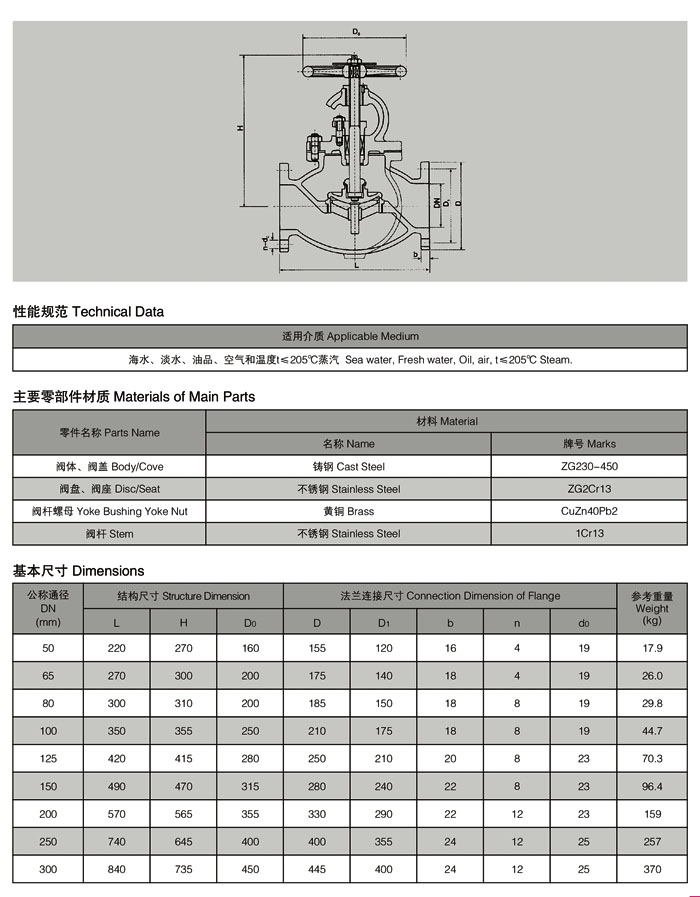 Marine bronze flanged globe valves Product model: AS type, BS type